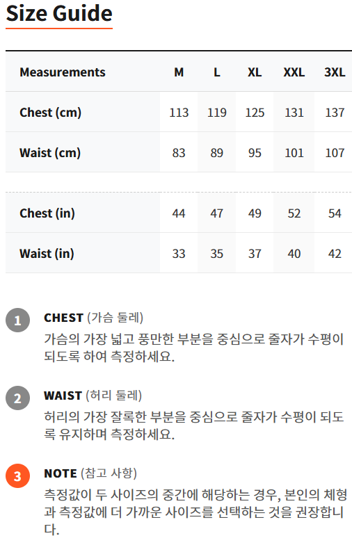 | Measurements | M | L | XL | XXL | 3XL |