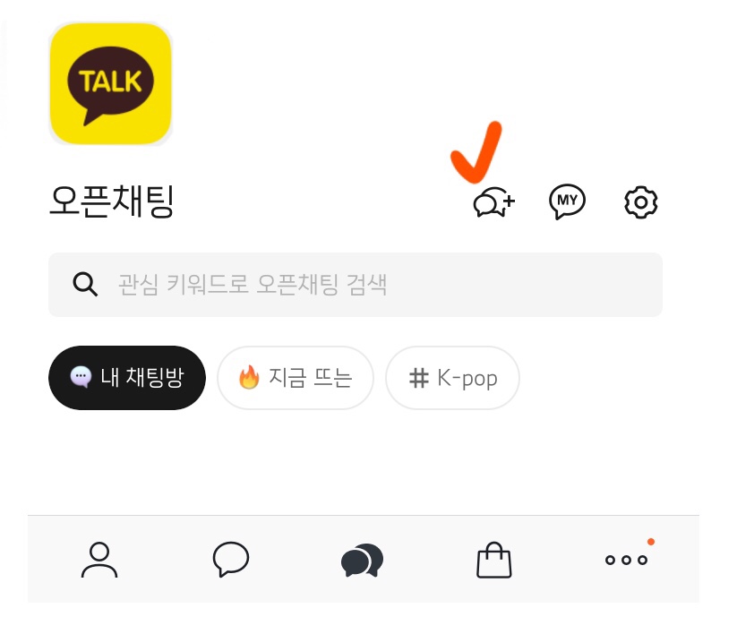 카톡 내 오픈채팅란 입장 후 채팅방 개설!