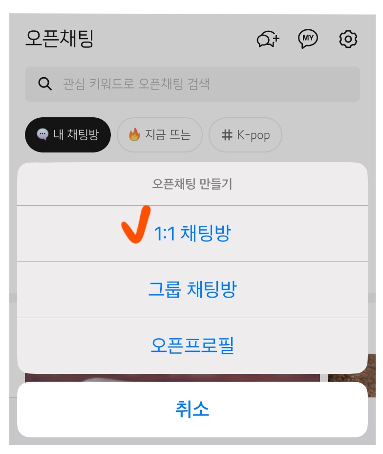 오픈채팅 만들기에서 1:1 채팅방 선택!