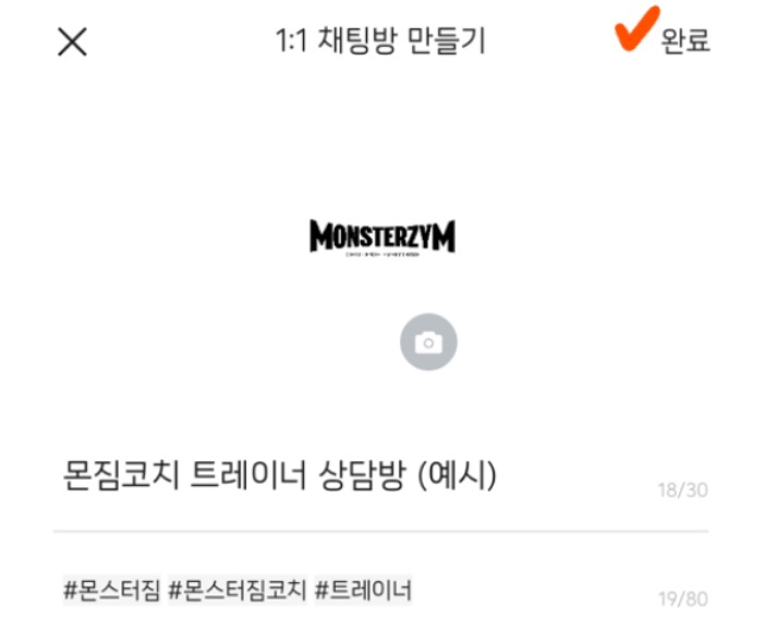 이미지, 채팅방 이름, 해시태그 설정 후 완료