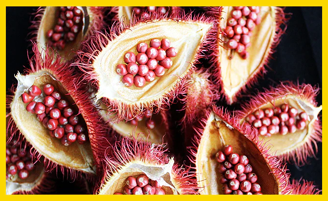 Анато нь Америкийн халуун бүсийн Ачиоте модны үрээс гаралтай.